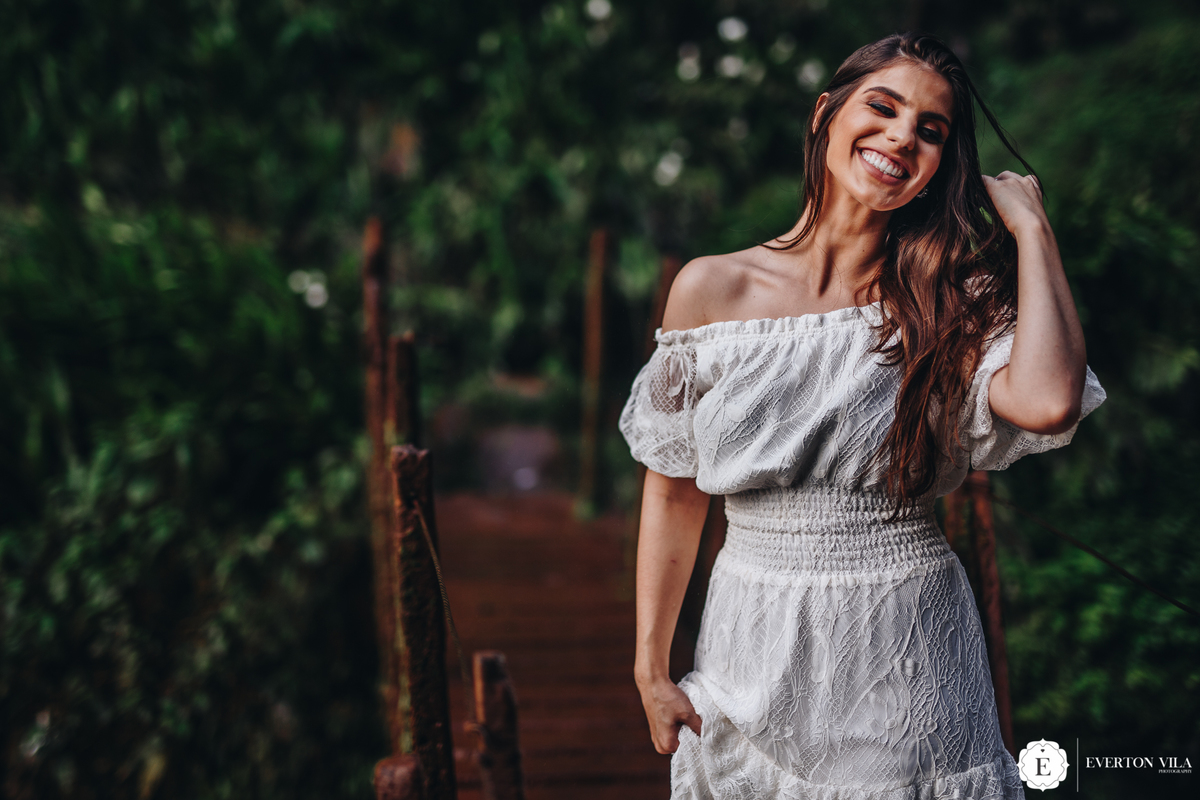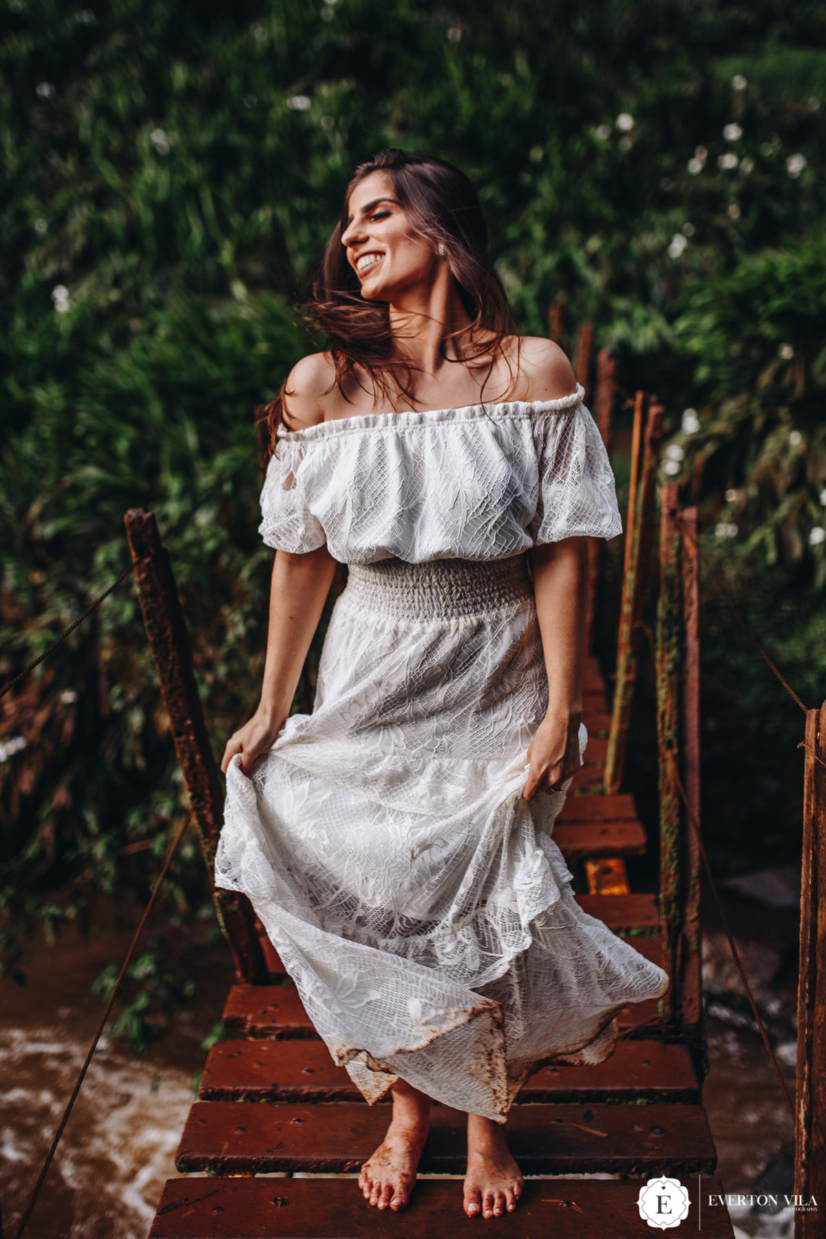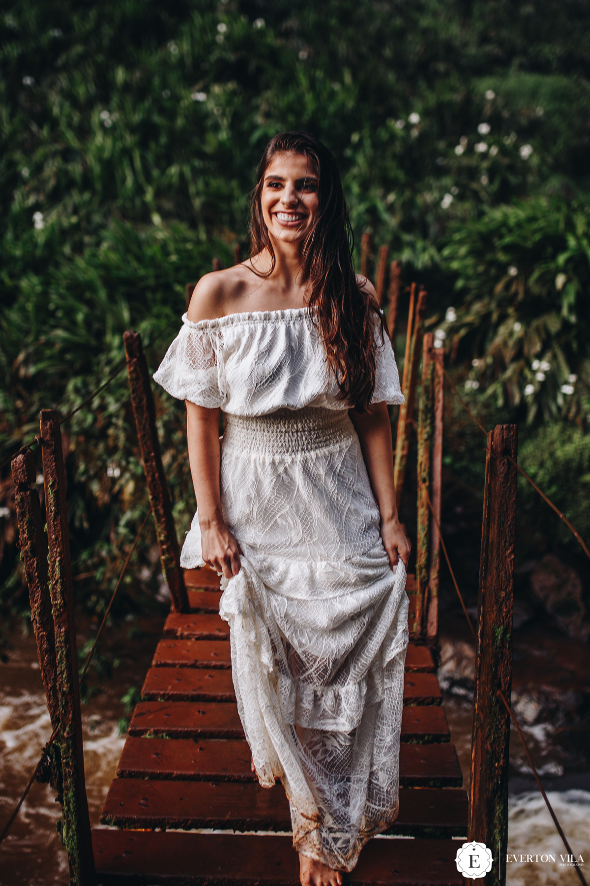 Depois, seguimos em direção da segunda parada, que era o Pousada Luar de Agosto, mas no meio do caminho, fomos surpreendidos com um local todo charmoso, com grama, árvores e pedras, e decidimos parar ali primeiro para mais algumas fotos. Ficou lindo o resultado, e enfim, chegamos a última locação.