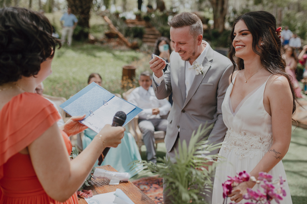 Além da celebrante, é possível que algumas pessoas falem sobre o casal durante a cerimônia. Confesso que adoro ver amigos, irmãs e padrinhos contando casos e falando palavras positivas durante a celebração. É um momento de emoção – e descontração! Além disso, garante que a sua cerimônia se torne única e inesquecível para todos os presentes!